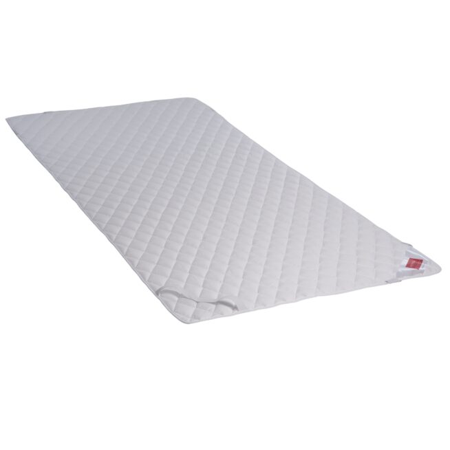 Mit vier Gummibänder an allen Ecken zum Fixieren auf der Matratze